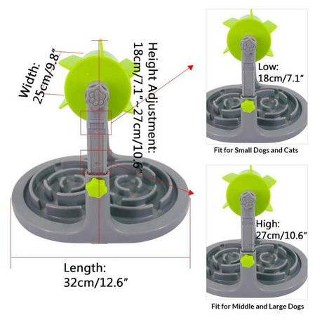Dimension - Height 7.1 - 10.6 inches/18-27 cm (Adjust the feeder to a suitable Height for your dog puppy sizes), width 9.8 inches/25 cm.