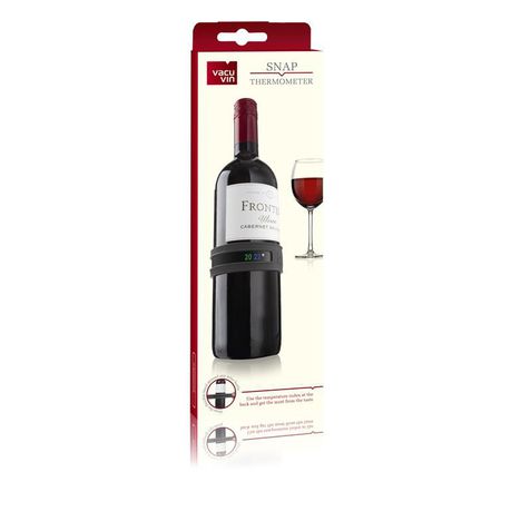 Vacu Vin is an international manufacturer and distributor of innovative wine related products for home and professional use, which are characterized by their practical applications in daily circumstances. Serving wine at the right temperature is easier said than done. What is the temperature of the wine you are serving and what is the right temperature for which wine? To solve this problem Vacu Vin has produced the Snap Thermometer. Like a snap bracelet you simply “click” it around the bottle and wait for the right temperature to appear. For the right serving temperatures refer to the temperature index at the back of the Snap Thermometer.