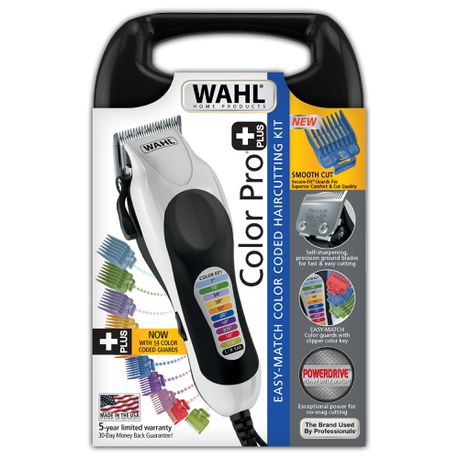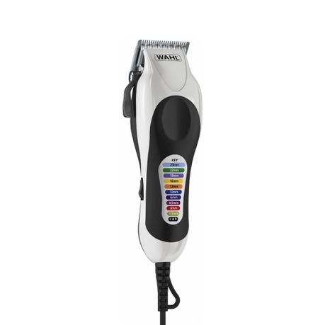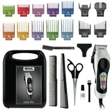 The Wahl Color Pro 23 Piece Hair Clipper Kit is ideal for a full range of professional family cuts in your own home. The PowerDrive motor has a heavy duty rating and will do the job, no matter the hair type. The colour coded guide combs correspond to the colour guide on the clipper, making it easier to give your family their favourite cut every time. Get your children involved by teaching them which colour guide gives them their best cut. This ergonomically designed clipper has a soft touch grip making it attractive, easy to use, quiet and powerful. The color pro kit is comprehensive for a variety of cuts & styles. The adjustable taper lever makes blending easy and the 14 guide combs give you a wide variety of cutting lengths. Everything can be neatly and safely stored away in the hard cover storage case.