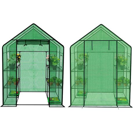 Strong Construction - This mini walk-in greenhouse is built with high quality metal frame with powder coating, durable bearing net on each layer is strong enough to hold more seed trays, pots and plants growth. The clear waterproof PE cover protects plants from frost or pests while allowing nourishing sunlight to pass through.