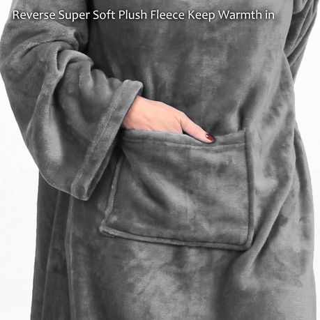 This luxury, wearable, and sleeved TV blanket can be worn backward, with sleeves covering your shoulders and arms while keeping hands free and will not slip down. It has a front pocket where you can store the tv remote, your mobile phone, or place your hands to stay warm.