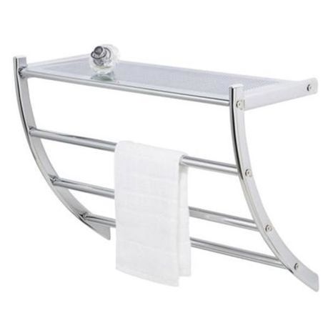 Two in one - decorative and practical, the chrome wall rack Pescara offers storage possibilities for cosmetic items, bathroom accessories on the stylish perforated metal shelf or an additional shelf for towels.