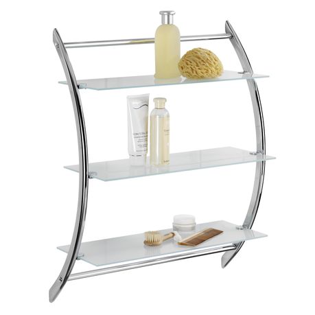 The three stylish, frosted safety glass shelves of the rack create versatile storage options for cosmetic items, bathroom accessories, and hand towels.