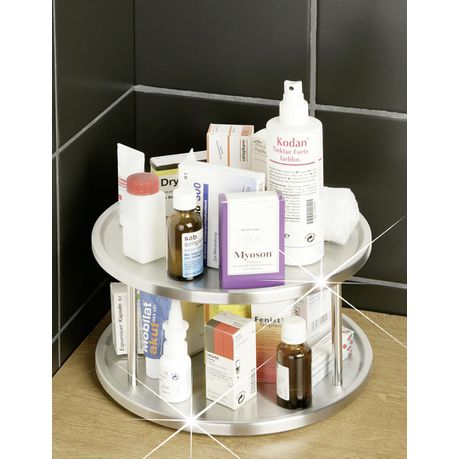 The carousel can be revolved by 360 degrees, thus enabling quick access to the spices, glasses or even tablets you are looking for if you use it as a first-aid rack.