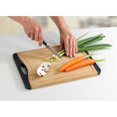Made of environmentally-friendly, rapidly renewable bamboo with black plastic edging (TPE)