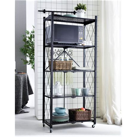 This highly dependable and structurally stable 5-tier shelving is made of durable, epoxy coated carbon steel, which can hold up to 83 kgs/shelf without wheels and 34 kgs/shelf with wheels. It comes pre-assembled and is also foldable, allowing a space-saving solution when not in use. Make your home life simpler and more convenient while adding a tasteful dash of contemporary industrial style to your interior.