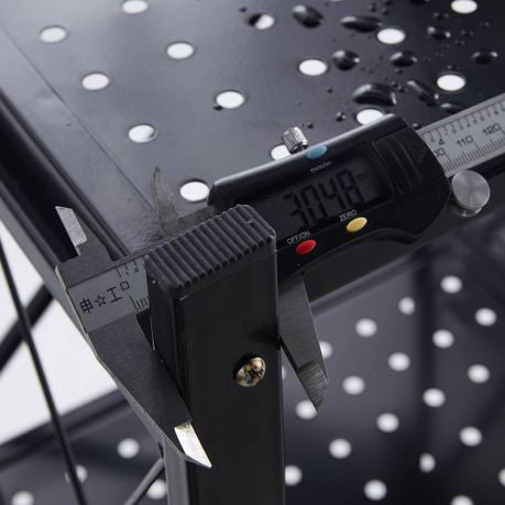 It's ideal for storing food, clothing, books, tools, or whatever else is utilizing space in your home, office, or workshop. A sturdy and slim design, with 4 easy-glide attachable wheels, which have a 360° rotation and a locking mechanism for added stability. The mesh grid on either end prevents objects from falling.