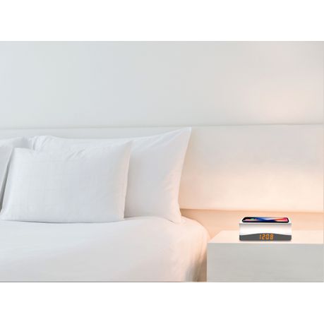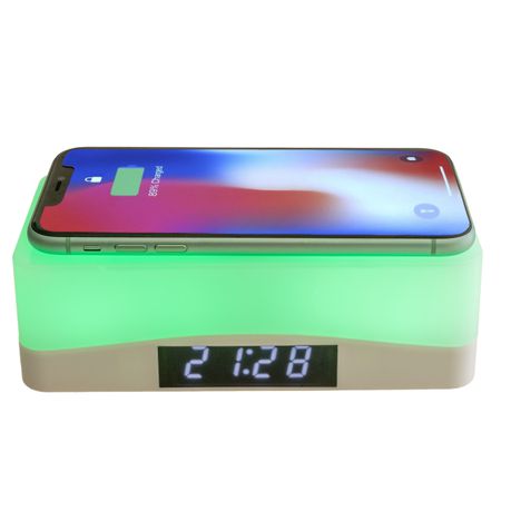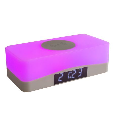 1 x Wireless Charging Station with Interchangeable Colour Nightlight & Clock