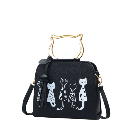1 x Women Mini Small Square Pack Shoulder Bag Cartoon Print With Cat Ear Handle