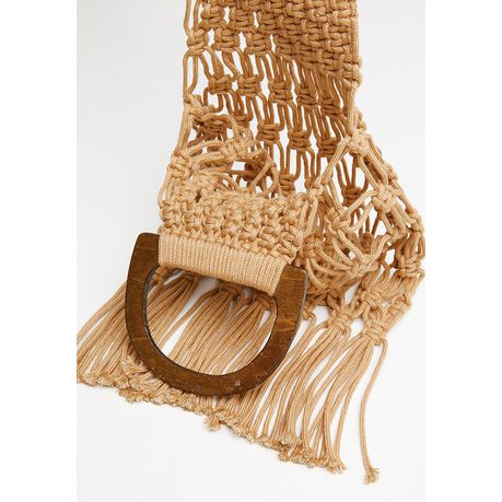 Women's Superbalist Net bag with wooden handle - beige