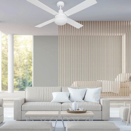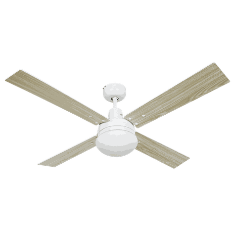 - White Metal Finish with Glass and Reversible Teak White Wash or White Blades