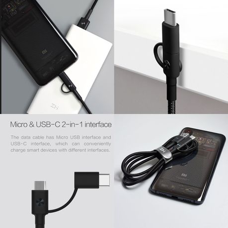 1x ZMI 1m - 3A 2in1 USB Type-A to MicroUSB/Type-C Adapter Cable - Black